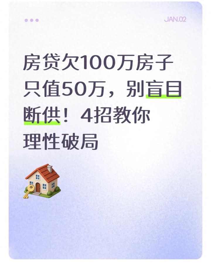 面对“房贷100万,房子只值50万”的负资产困境,焦虑和逃避都没用,唯有理性应对才是出路。无论是和银行协商、以租养贷,还是止损卖房、提升收入,核心都是“不放弃、不盲目”。